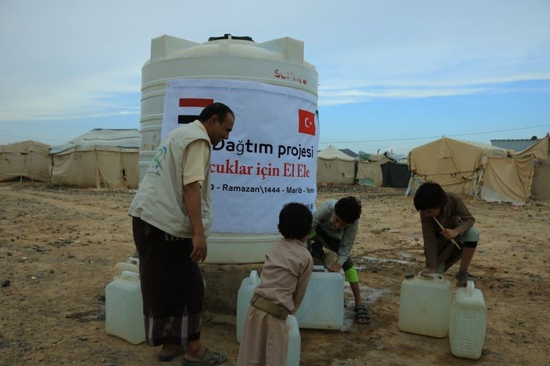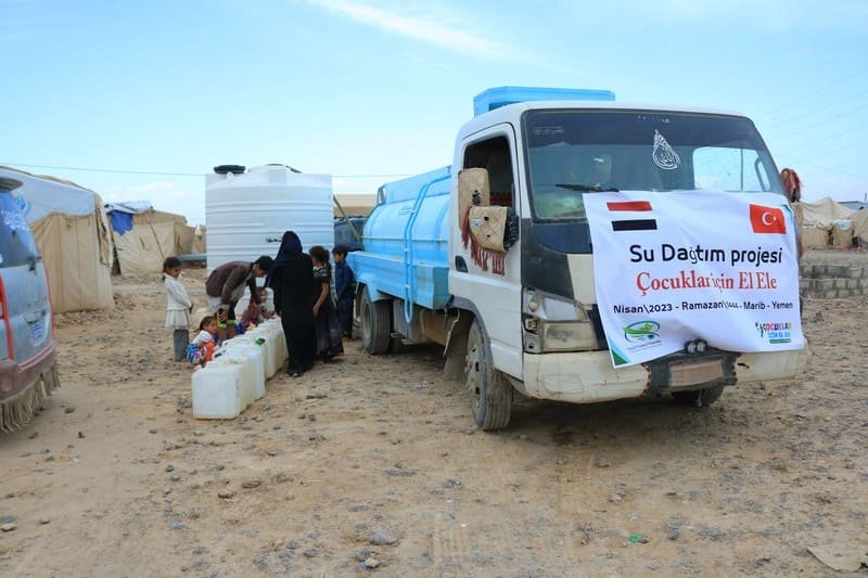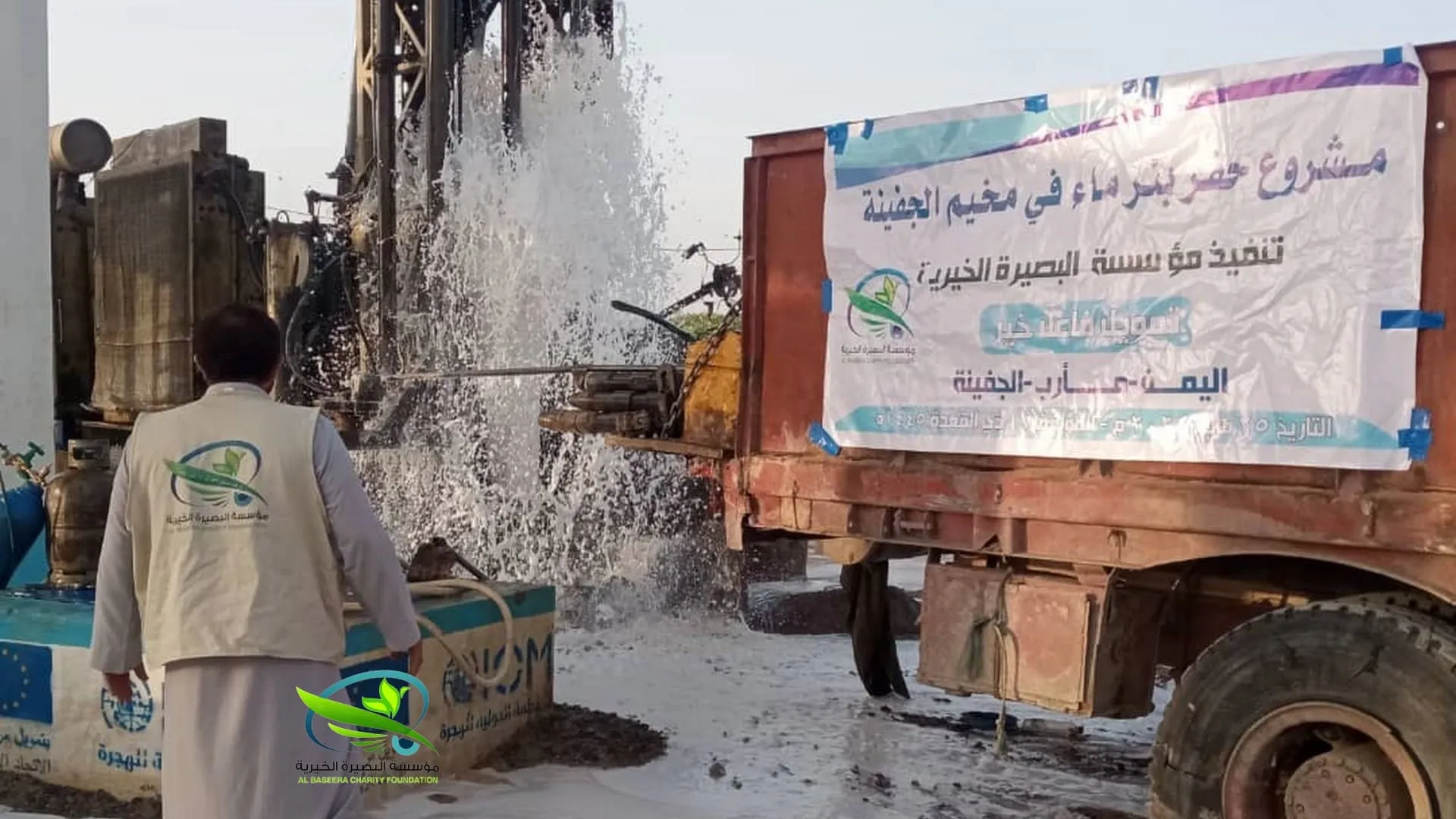 مؤسسة البصيرة تنفذ مشروع بئر مياه جديد في مخيم الجفينة للنازحين بمأرب