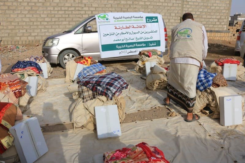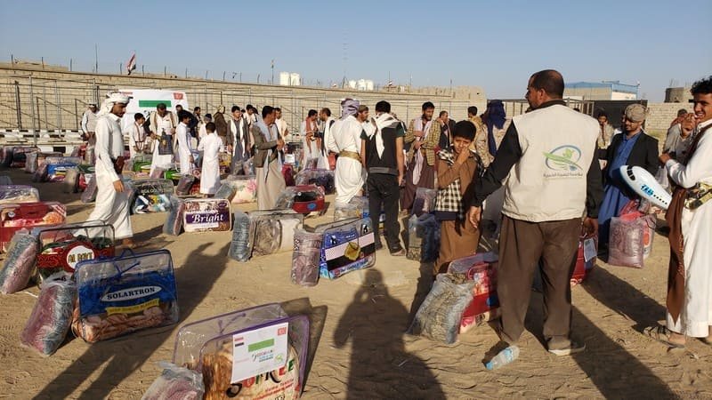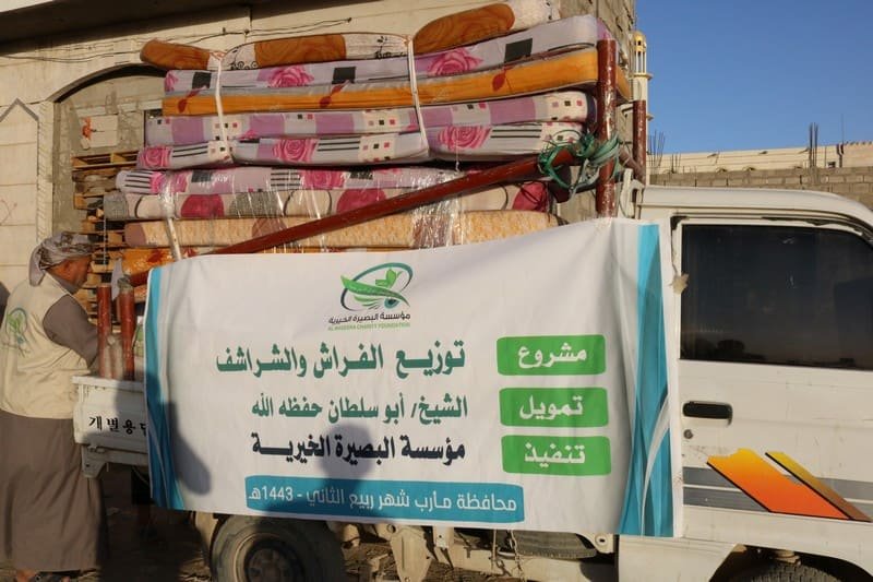 مؤسسة البصيرة توزع 300 حقيبة إيوائية للنازحين في مأرب