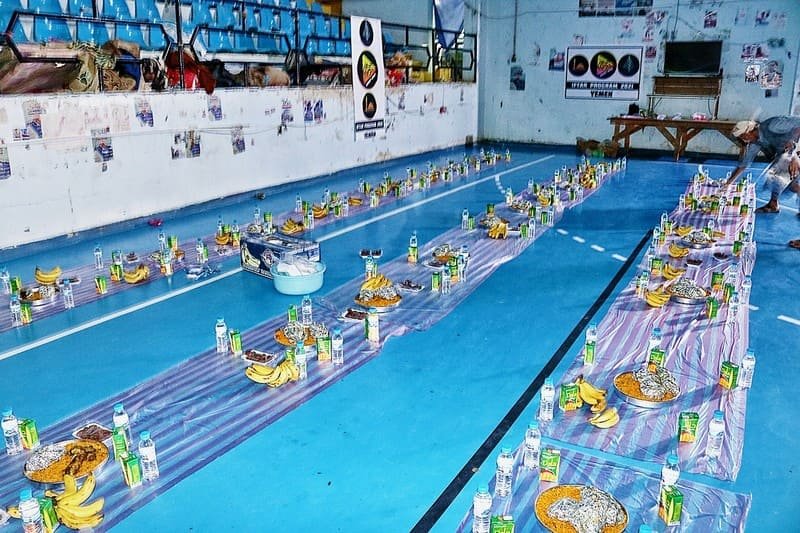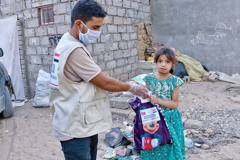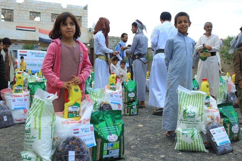 السلة الغذائية، المساعدات النقدية، المخبز الخيري (15,000 رغيف يوميًا)، وجبات الإفطار، توزيع التمور، لحوم الأضاحي