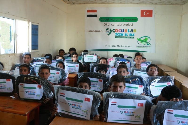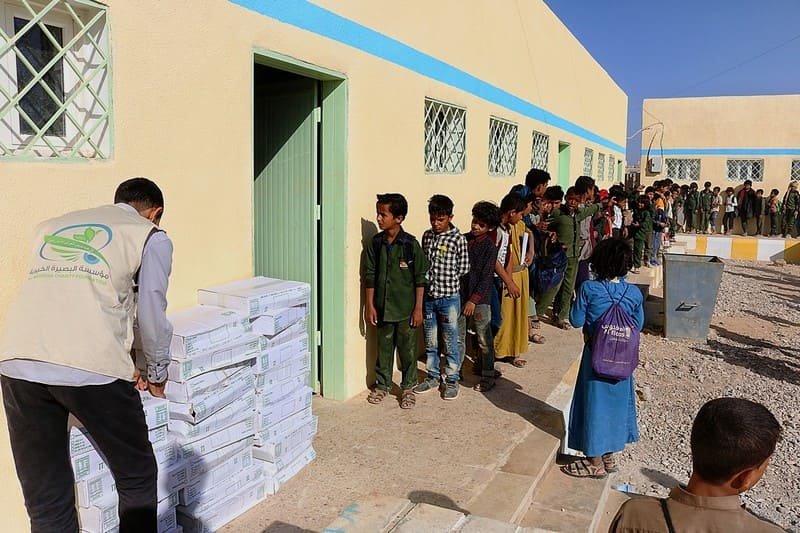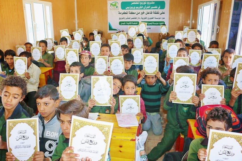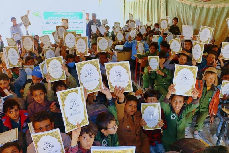 توزيع المصحف المفسر، الحقيبة المدرسية، مراكز تعليم القرآن، دعم المدارس بالخيام.